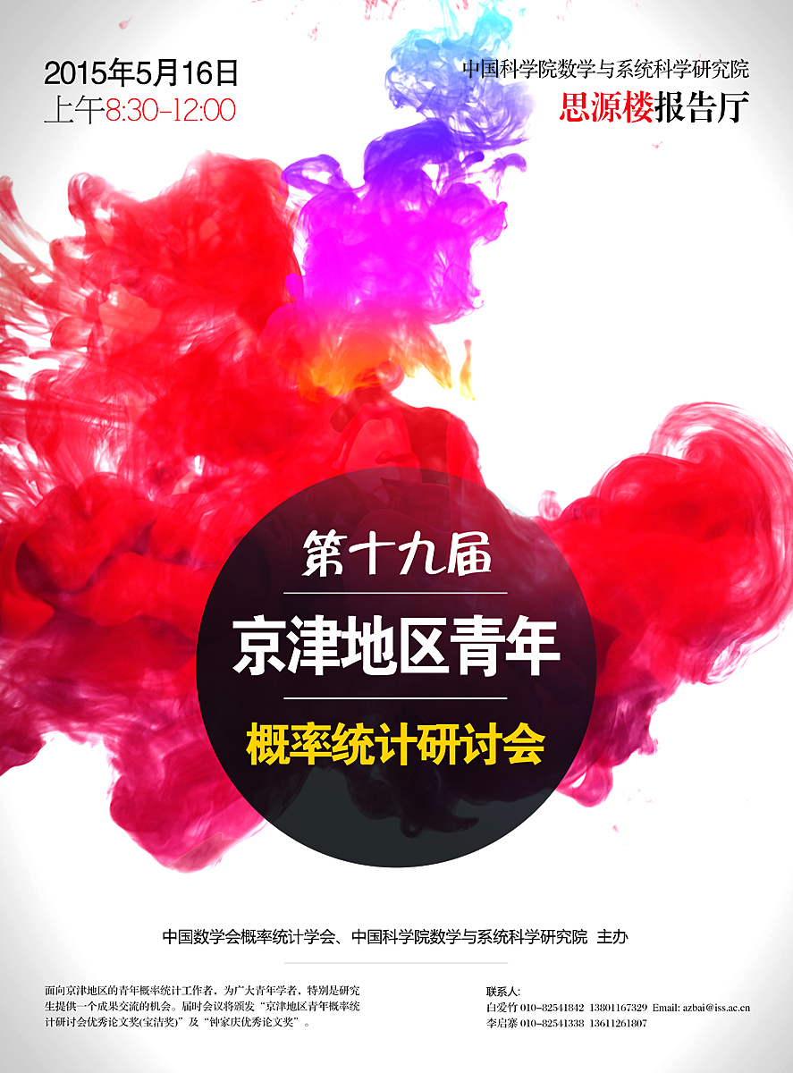 会议主题:研讨会主要面向京津地区的青年概率统计工作者,为广大青年学者,特别是研究生提供一个交流成果交流的机会。会议设“京津地区青年概率统计研讨会优秀论文奖(宝洁奖)”及“钟家庆优秀论文奖”5-7名,报奖者需不超过35岁,中国数学会概率统计学会将向每位获奖者颁发获奖证书和奖金。