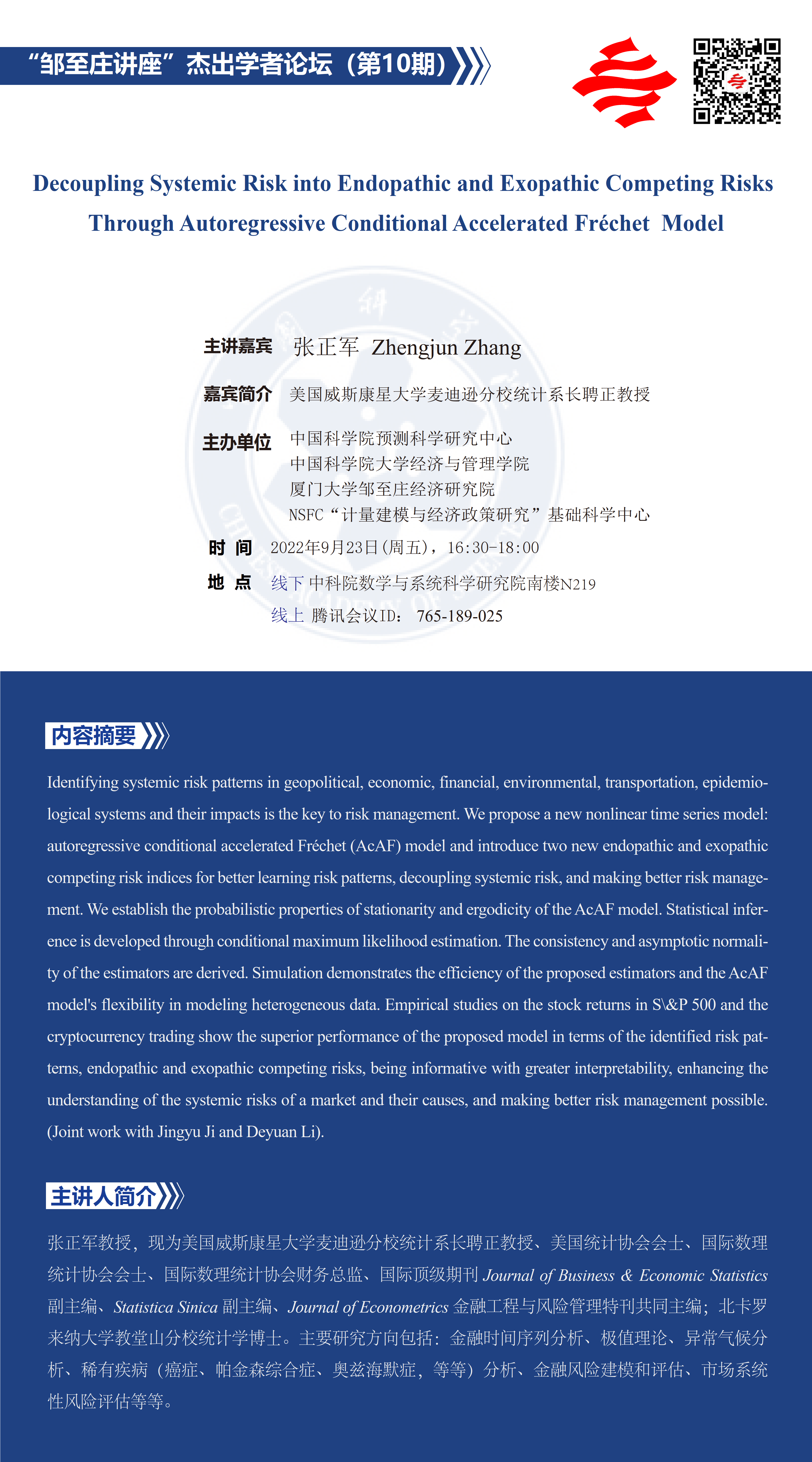 【2022.09.23-09.23 北京&腾讯会议】 “邹至庄讲座”杰出学者论坛(第10期)