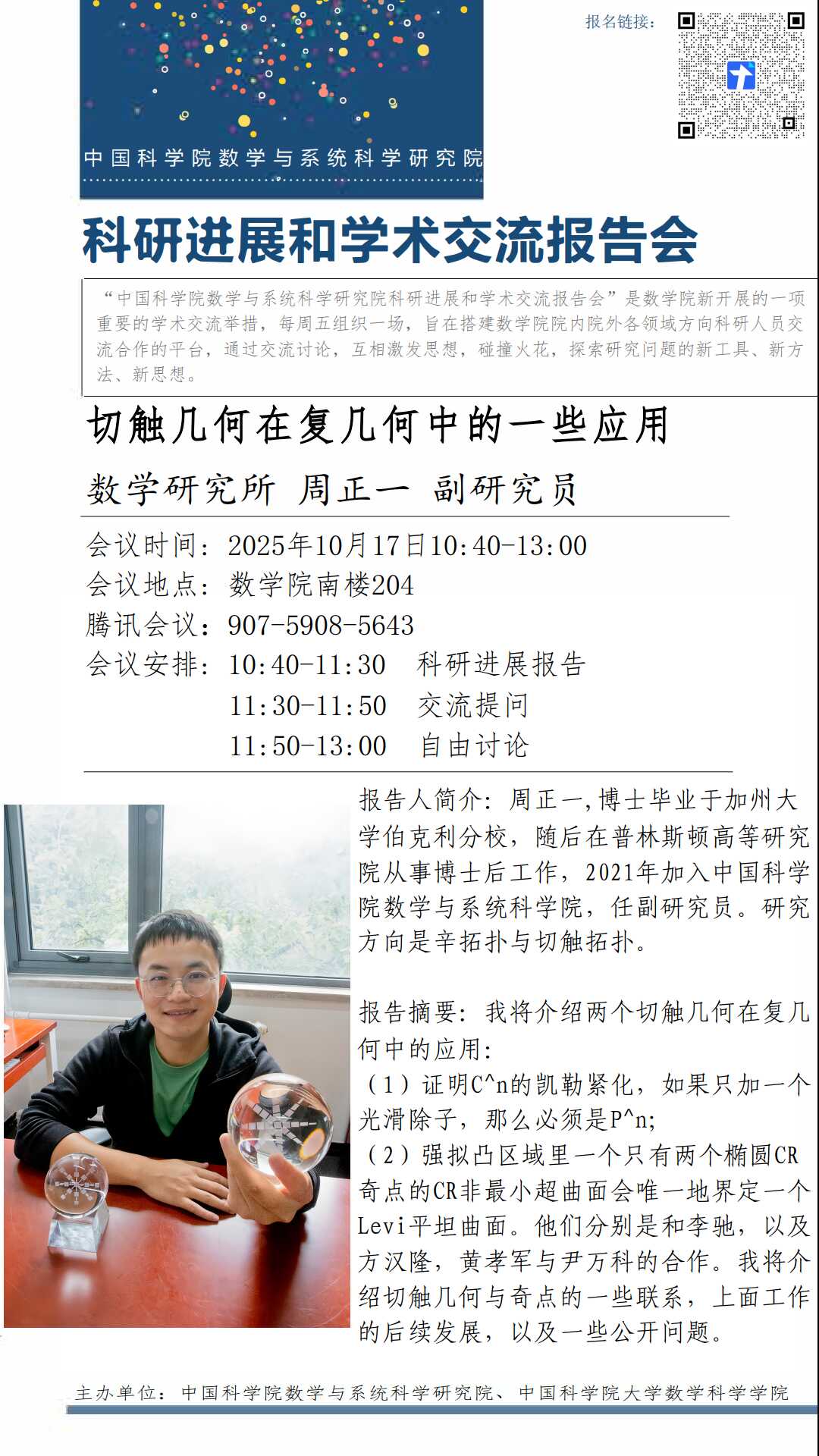 【2025.10.17-10.17 北京&腾讯会议】数学院科研进展和学术交流报告会(第一百二十一期)