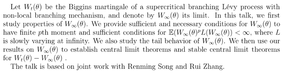 报告题目:Moments of additive martingales of branching L\'evy processes and some applications