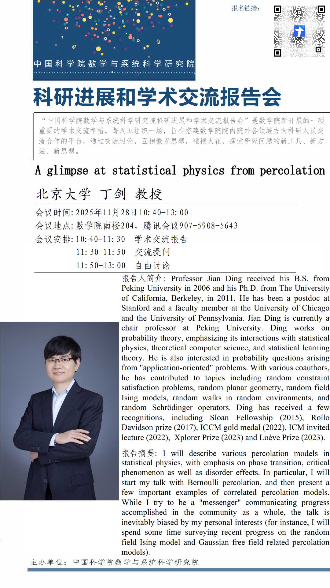 【2025.11.28-11.28 北京&腾讯会议】数学院科研进展和学术交流报告会(第一百二十七期)