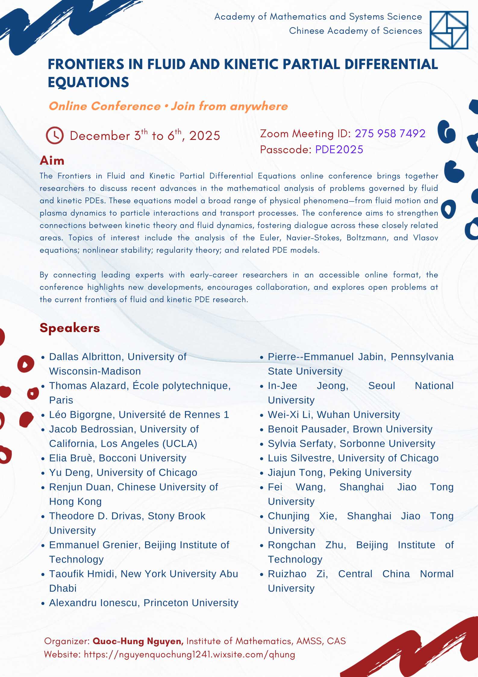 【2025.12.03-12.06 Zoom】Frontiers in Fluid and Kinetic Partial Differential Equations