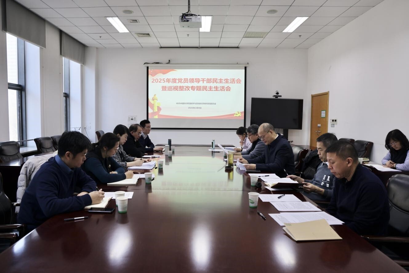 2026年2月9日上午,中国科学院数学与系统科学研究院(以下简称“数学院”)党委召开2025年度党员领导干部民主生活会暨巡视整改专题民主生活会。会议由数学院党委书记兼副院长武艰主持,数学院班子成员参加会议。