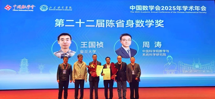 2025年10月17日,中国数学会2025年学术年会在山东滨州召开。大会开幕式上公布了2025年中国数学会三大奖项获奖名单。我院周涛研究员荣获第二十二届陈省身数学奖。